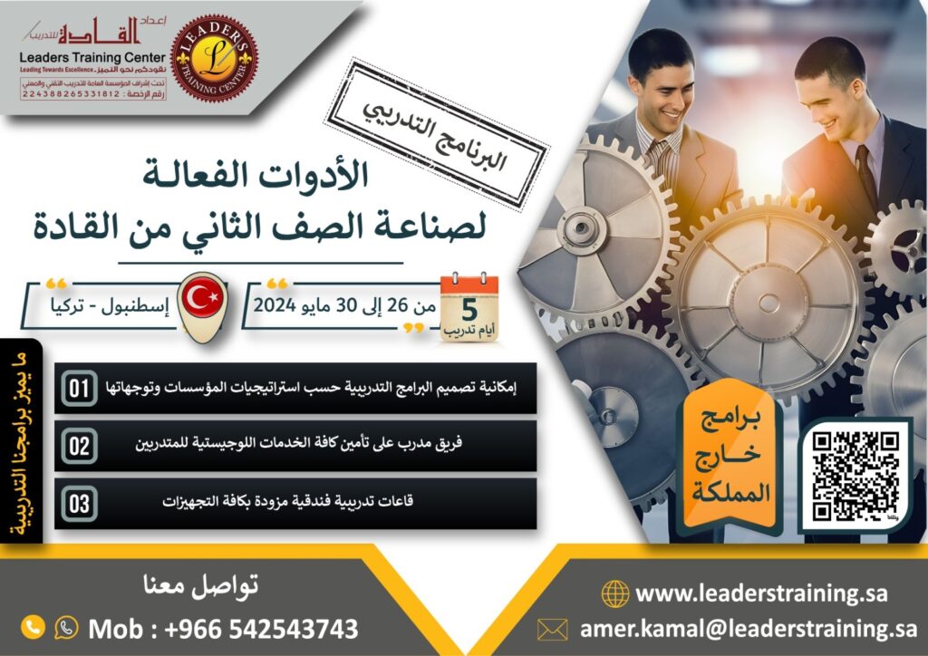 تتم مراجعة البرامج التدريبية بواسطة فريق مركز إعداد القادة للتدريب و يتم تحديثها أسبوعيا باستمرار لضمان ارضاء الاحتياجات التدريبية للمتدربين في جميع قطاعات التدريب لكافة أنواع المنظمات والشركات. ومن أجل الاطلاع على الجدول يرجى مراجعة الدورات أدناه، وفي حال عدم وجود ما تبحث عنه، يرجى الاتصال بنا وسوف نقوم بمساعدتك في أسرع وقت ممكن.